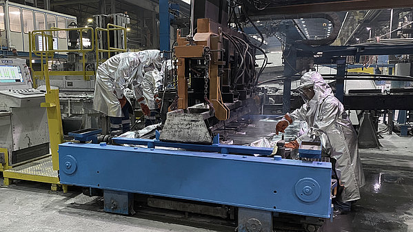 In der Gießerei am TRIMET Standort Essen kommt ein neues System zum Ein- und Ausgießen des flüssigen Metalls zum Einsatz. Die flexible Gieß- und Überführungsrinne wurde bei TRIMET eigens für den Bedarf vor Ort entwickelt. Die innovative Konstruktion erhöht die Arbeitssicherheit, erleichtert die Arbeitsabläufe und mindert den Instandhaltungsaufwand.